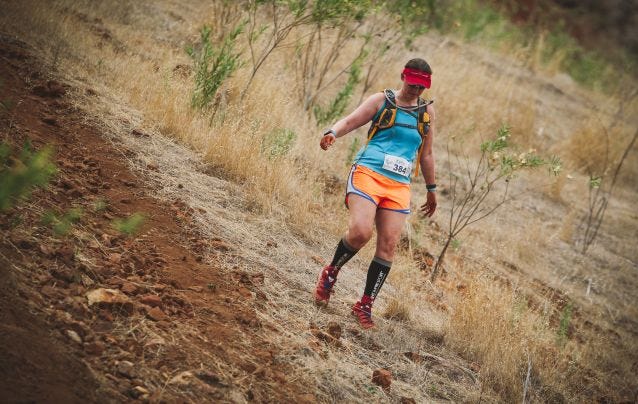 On the way back after Ben Treasure ushered me out of the aid station I went to the marshal point where Shona MacDonald was. We talked for a while about Truth or Consequences, the 50k ultra that uses some of the Snakes N Ladders course, including The Three Steps. It's a two lapper, so even if you do Half Truth, the 25k option, you still have to do the Steps.
